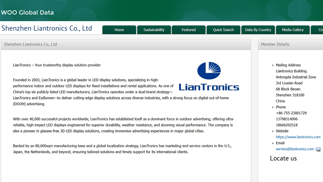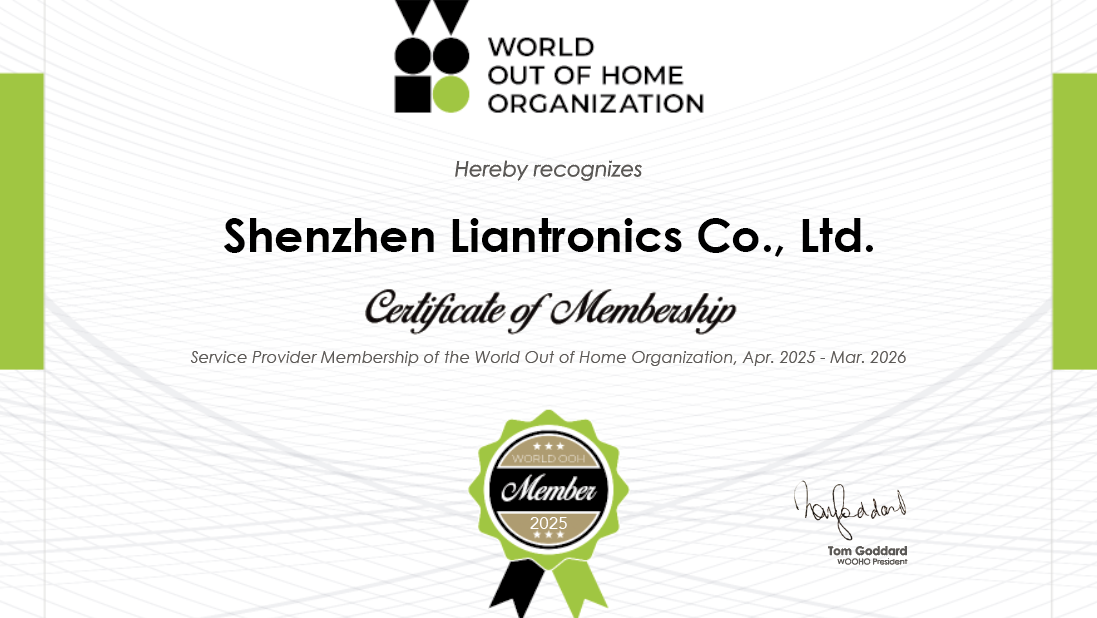 LianTronics, a global leader in LED display solutions, is proud to announce its membership in the World Out of Home Organization (WOO). As part of this prestigious global network, LianTronics is committed to driving innovation, fostering industry collaboration, and advancing outdoor advertising with cutting-edge LED technology.