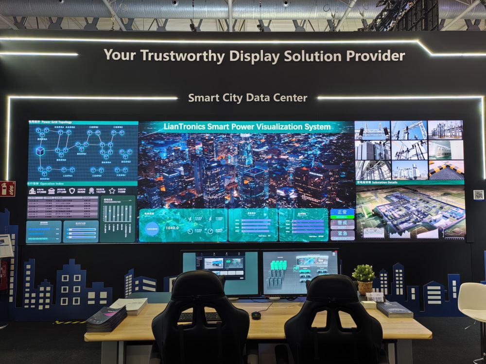 Esdlumen builds a complete bus stop display solution at its booth. The information display board on the side deployed Esdlumen outdoor small-pitch LED display, MPA Mini series. This series utilizes Esdlumen patented mask to offer superior screen protection from the sun and rain. Furthermore, super-high contrast ratio, 4500nits high brightness, and 3840Hz high refresh rate guarantee bright, clear, and vivid visual effects for a close-distance information display. In the background of the bus stop is an advertising digital screen made up of BIM Plus Series, which has ultra-sleek and lightweight panels that blend with the wall perfectly to save space and costs.