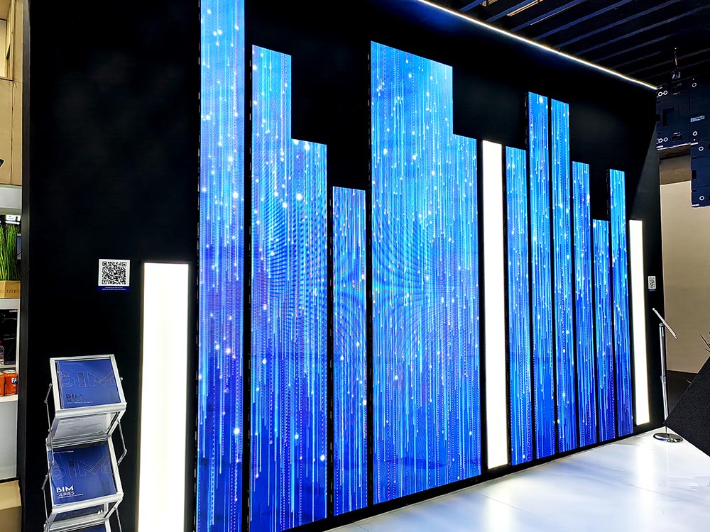 At this expo, Esdlumen is showcasing a wide range of imaginative commercial display screen forms, such as wing shapes, irregular wavy shapes, Rubik's cube shapes, rectangles, etc., all of which could be perfectly tailored to the demands of consumers in various advertising scenarios. Most of these screens are assembled from Esdlumen hot-selling commercial advertising LED Display—BIM Plus-X Series. BIM Plus-X Series has three-sized light and thin cabinets that allow for flexible splicing. In addition, it supports 90° rotation and staggered splicing, as well as mixed splicing with the BIM Plus and BIM MIN series to create unique shapes that save money and space while achieving eye-catching visual effects and improving brand influence.
