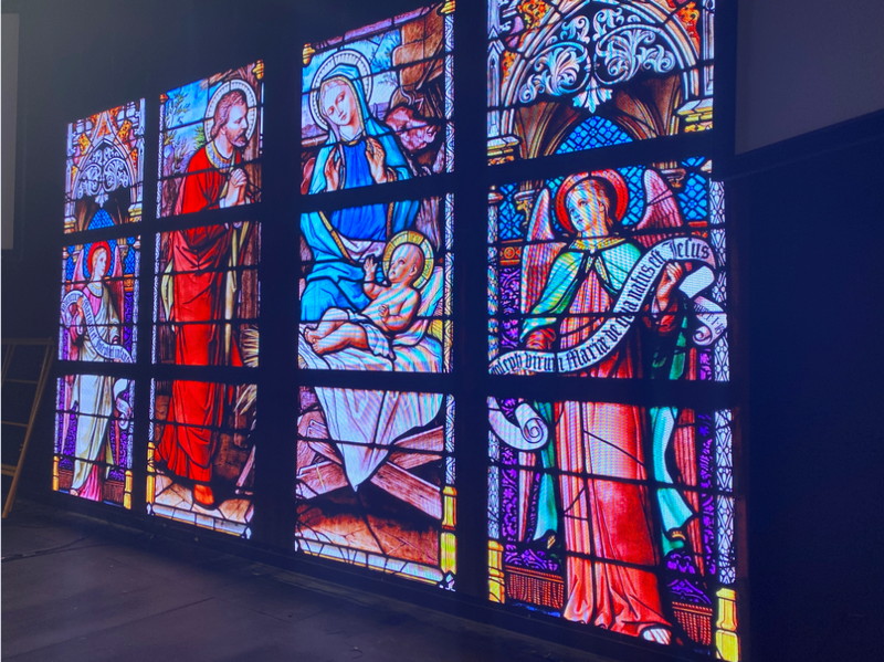 In the largest church of High port city, the beautiful mural screen can become online live screen any time