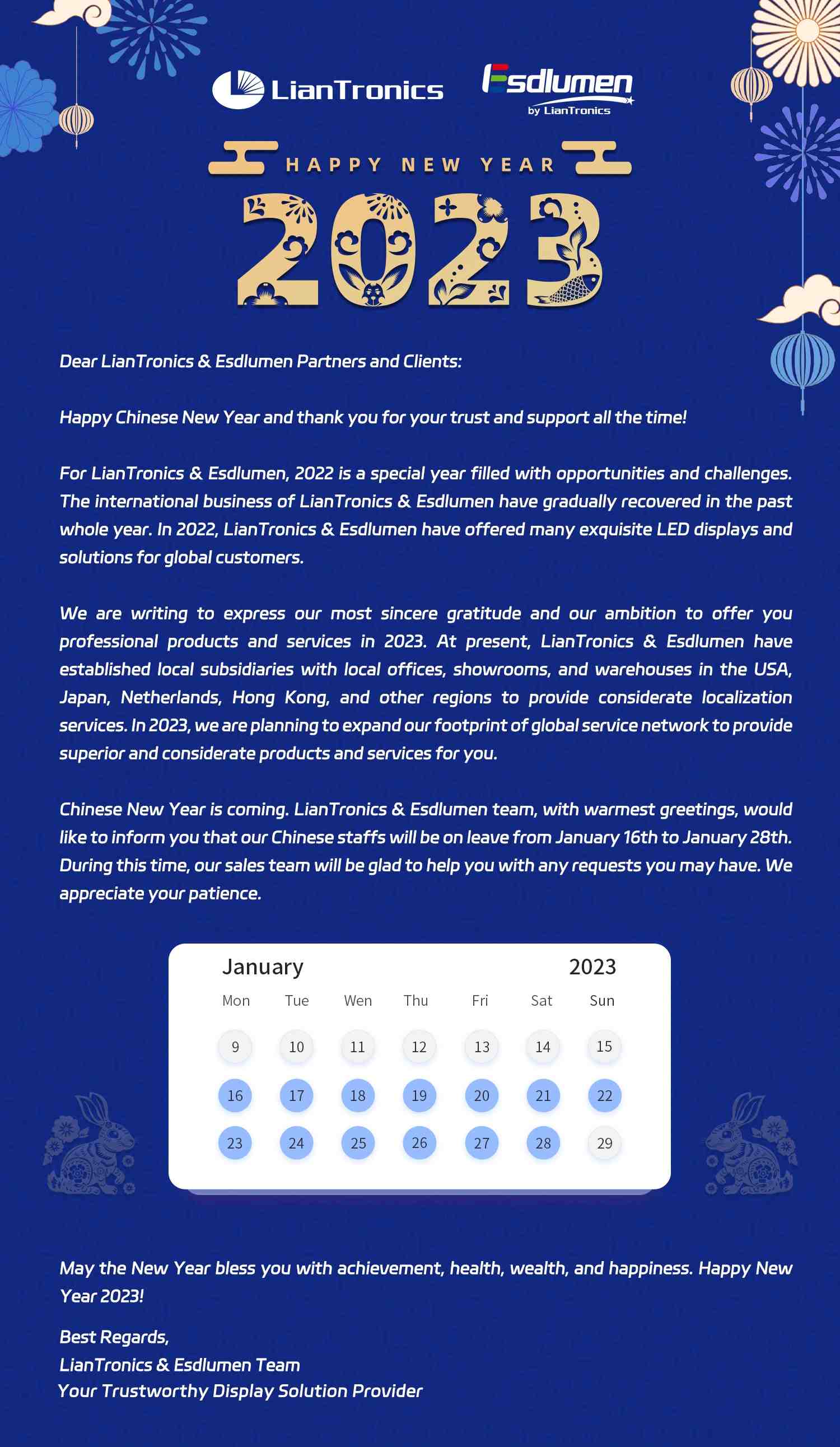Happy Chinese New Year From LianTronics & Esdlumen!