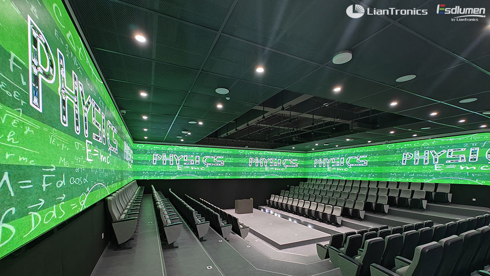 Apart from the three-sided round classroom, the remaining 4 sets of fine-pitch LED screens are applied in a meeting room, a training room, a lecture theater, and the library to upgrade the university’s educational modernization. These education display solutions adopt Esdlumen’s patented Six-Dimensional Minitrim Technology to ensure the screens’ ultra-high flatness for excellent viewing experiences. Furthermore, Esdlumen Nano-Coating Craftsmanship offers complete dust-proof and moisture-proof protection to prevent LED “caterpillar” failures while preserving stunning and captivating display effects.
