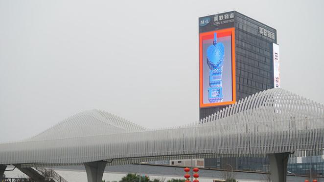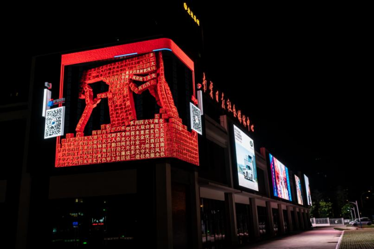 This group of 5 creative outdoor LED screens, of which the two L-shaped ones on two sides are in naked-eye 3D effect, is the first set of glasses free 3D large screens in Guangxi Province. With a total area of nearly 500 sqm, this set of LED walls fully cover the audience from various angles to deliver the digital information, playing a communication role between Nanning Daily -- the local authoritative media and the audience.