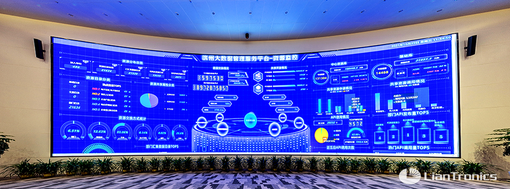 5 sets of fine-pitch LED walls were installed for Bohai Institute of Advanced Technology, which is a governmental sample project that promotes the technological innovation and development of Binzhou City, Shandong Province, China. As Smart Binzhou being the core project of Bohai Institute of Advanced Technology, the high-resolution visualization platform plays an important role to integrate various channels of information in real time and to facilitate smart monitoring & rapid decision making. In addition, LianTronics video walls are also applied in the conference hall, lobby and exhibition hall to upgrade the digital display facilities of Bohai Institute of Advanced Technology.