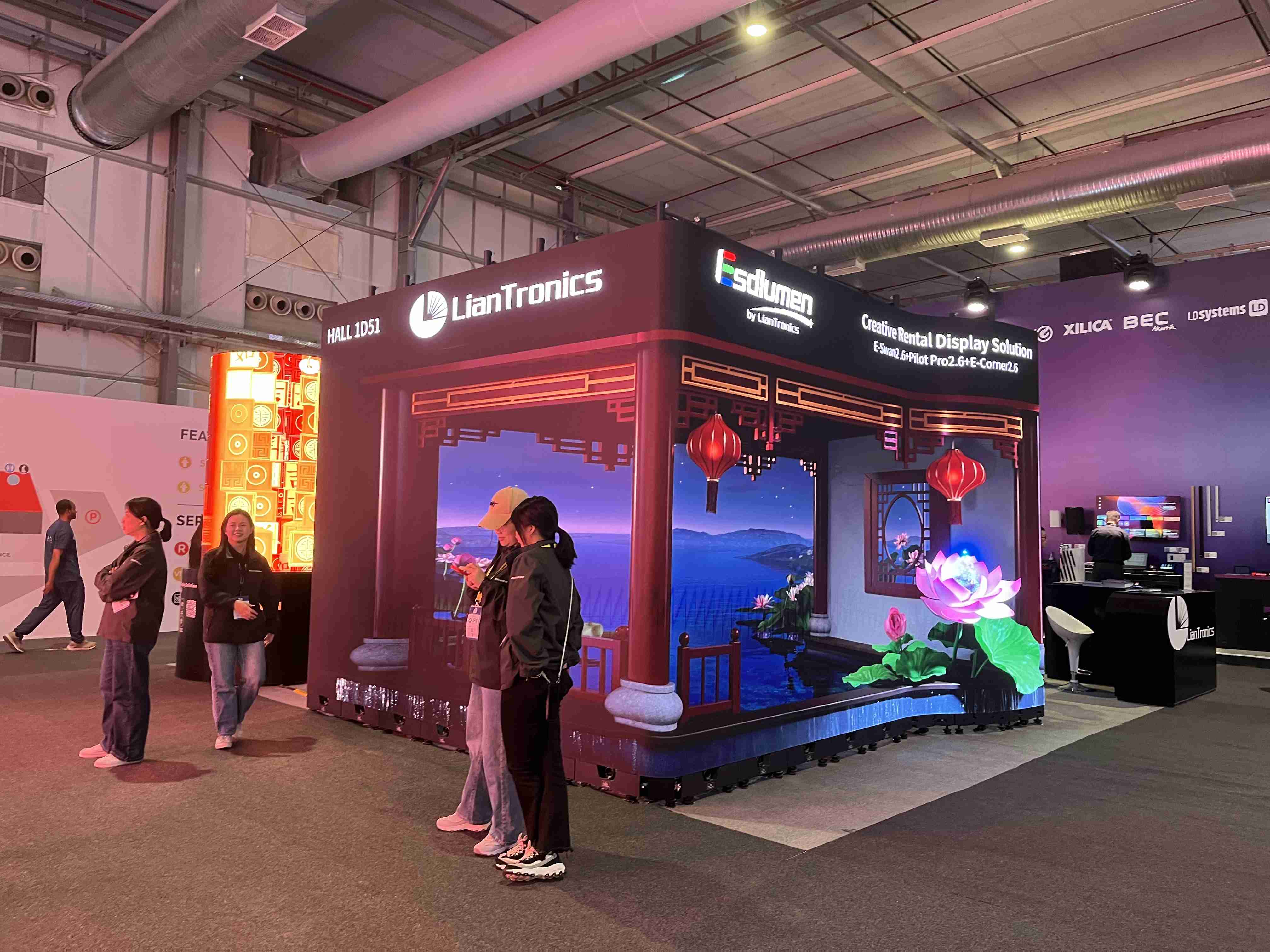 In the Naked-Eye 3D Zone, LianTronics’IP character "Little Lian" captivated audiences with lively interactions. The display featured the E-Swan, Pilot Pro, and E-Corner rental series, which seamlessly combined to create dynamic curved and corner configurations for 3D installations.