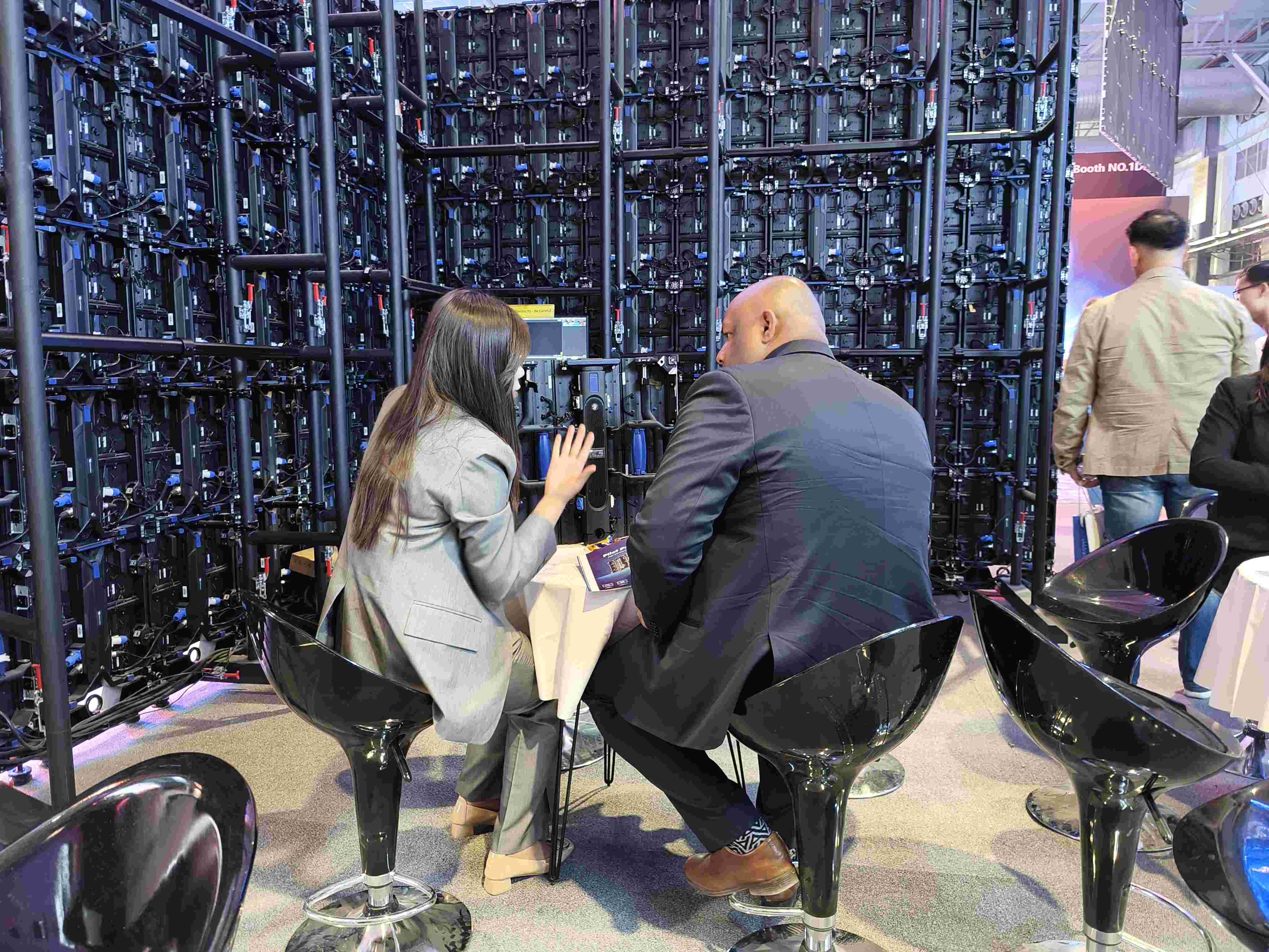 At the Rental/Outdoor Product Zone, the E-Swan and Pilot Pro series drew significant attention with their lightweight construction, tool-free installation, and adjustable curvature. Engineers provided hands-on demonstrations, allowing clients to experience the products’ flexibility firsthand. This interactive approach strengthened client engagement and deepened understanding of LianTronics’ market-leading adaptability.